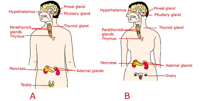 IEndoc rine Glands in (a) Male (b) Female